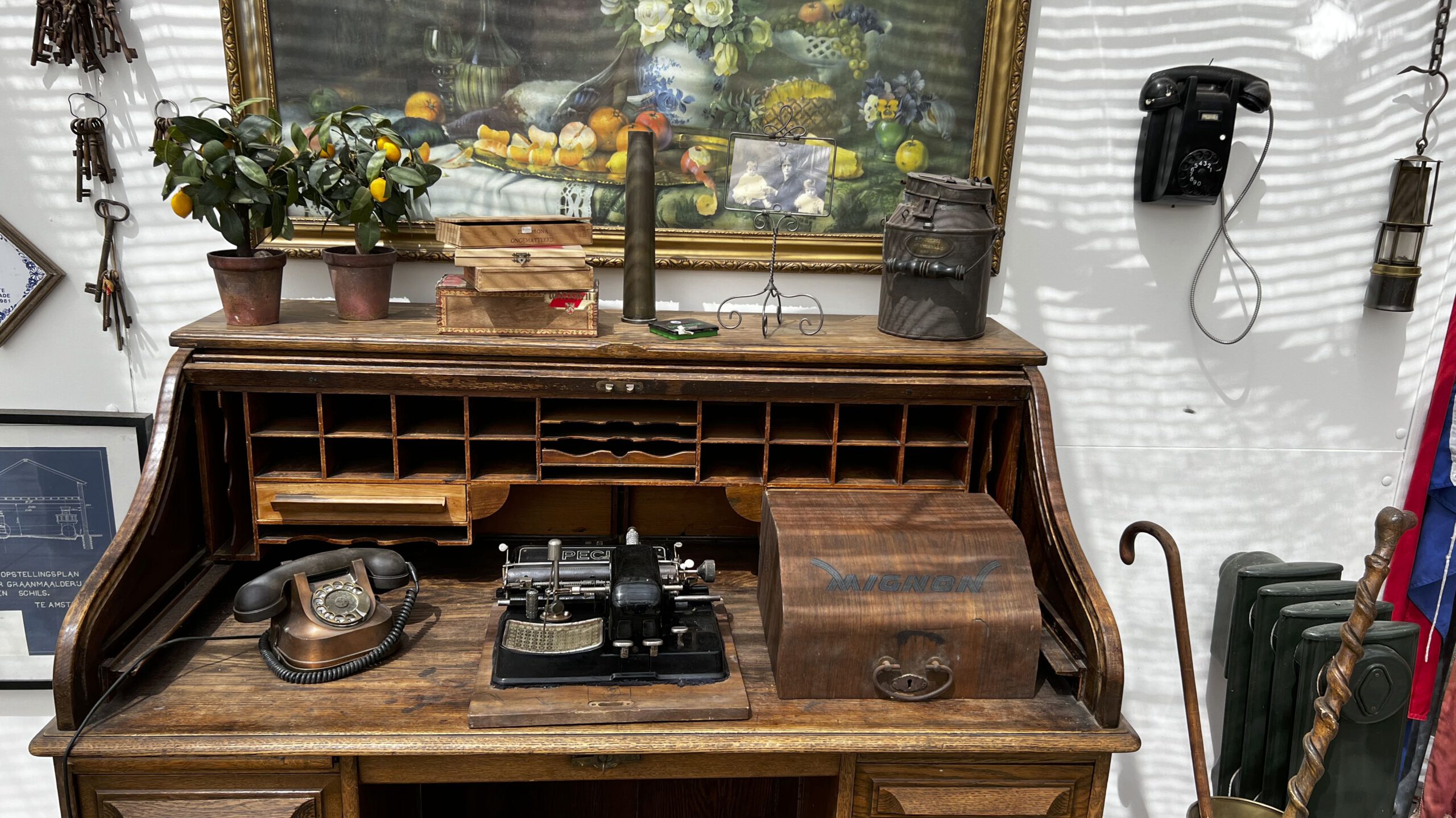 Het kantoor is ingericht met enkele oude spullen zoals het bureau, handgemaakt uit eind 1800.  Opvallend is de stembus welke op het bureau staat. Dit is een oude stembus van de Gemeente Amstenrade uit 1856.